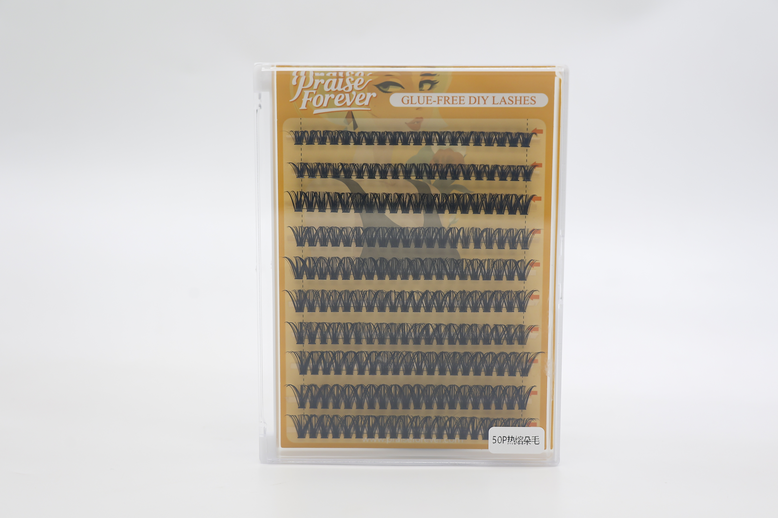 Pre-formed lashes (no fanning skills). YY: light curl; W: fuller. Flat base, fast application, long wear.